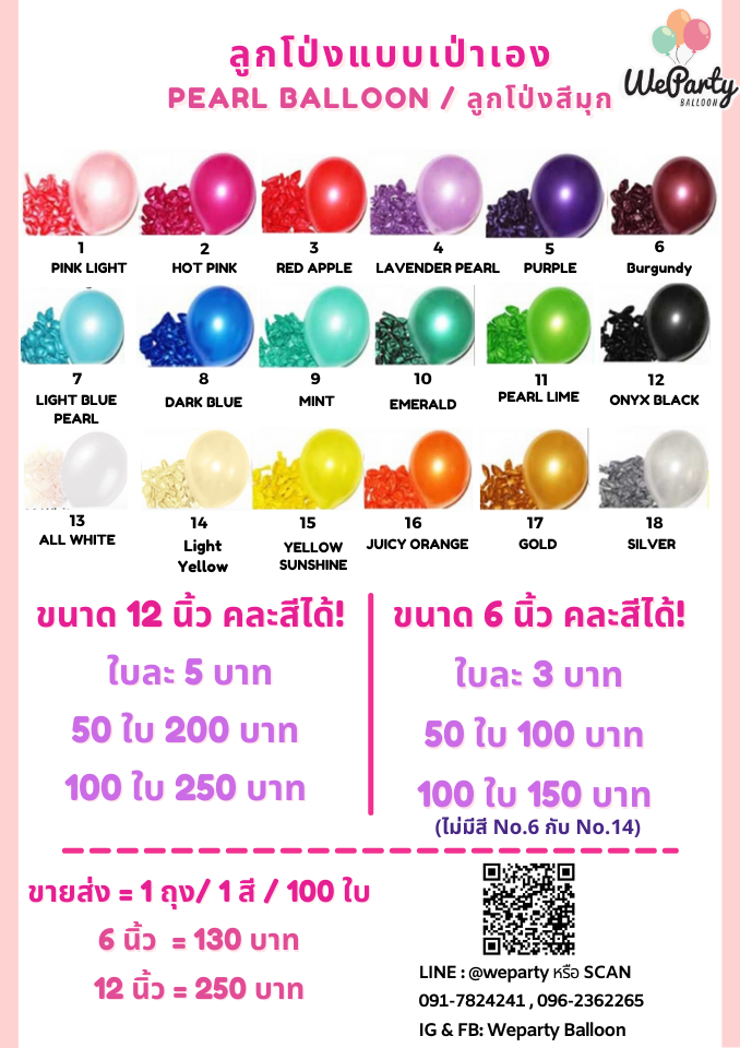 ลูกโป่งสีมุกแบบเป่าเอง (ราคา & โทนสี)