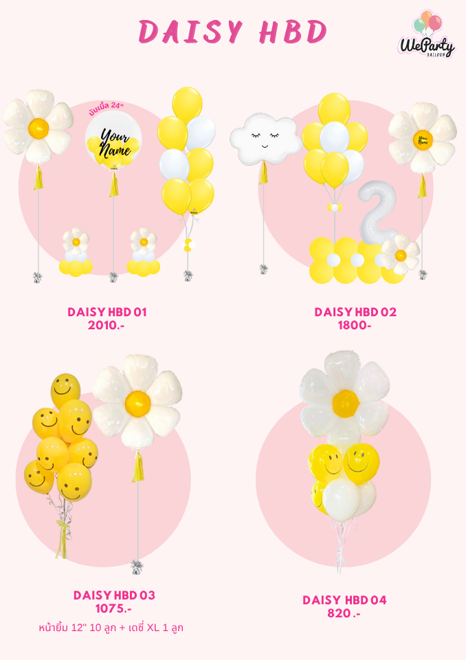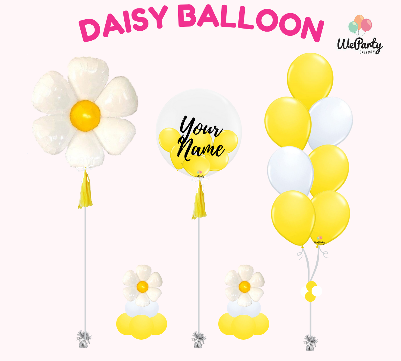 ลูกโป่งลอยเดซี่ & ช่อลอยหน้ายิ้มผสม Daisy with Yellow Smile bouquet balloon set (with Helium)(สนใจสั่งซื้อผ่าน Line: @weparty)